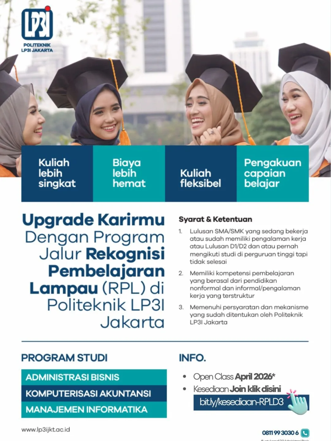 Politeknik LP3I Jakarta membentuk generasi yang berkompeten dan dibutuhkan di dunia kerja masa depan.